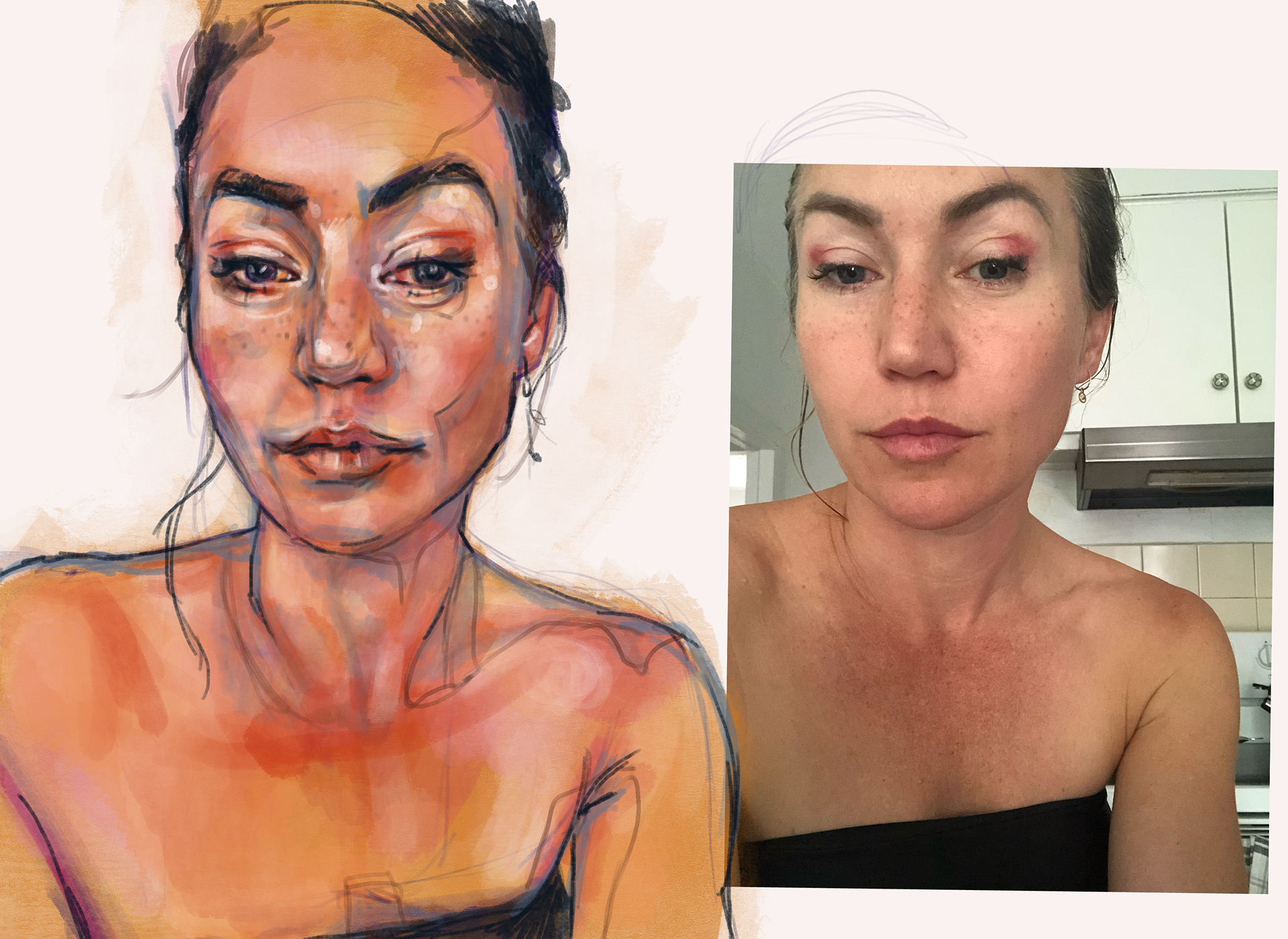 "Pia is an Australian illustrator and designer based in Canada. Her work combines classical realistic portrait drawing with expressive digital colouring and painting. She is interested in exploring opportunities for reproduction, detailing and contrast: in light and pure colour, questions of value in craft, and of recording the impact of encounters and experiences."